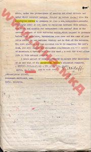 Морално, ниеМакедонците, паднавме во рацете на разбојници и сме жестоко ранети. Ние посакуваме, бараме и очекуваме, што побрзо, еден Самарјанин да ги облекува нашите рани и да ги избрише нашите солзи. Вие, американски и англиски народе, дојдете и ослободете не, бидејќи нашите деца се расфрлани низ целиот свет, нашите имоти се консумирани од оган или експроприрани од Срби и Грци! Тука во Европа, нема моќна нација на која можеме да се потпреме за наше ослободување. Од секој град, село и семејство во Македонија, се слушаат криковите на оваа многу страдална нација кон вас, цивилизираните и христијанските нации, со најискрена молба да се формира посебна независна Македонија во нејзините признати географски граници. Дадете ѝ слобода и овозможете ѝ да го има Евангелието на Исус Христос – Светото писмо, под протекторат на Америка и Велика Британија и под нивно владеење. (Римјаните, поглавје 10, стихови 11-14). Овозможете македонската нација да започне да живее нов, независен, мирен, религиозен живот! Не оставјте ја оваа несреќна, но будна и способна нација во религиозна темнина! Ова е искрената молба на оваа страдална нација, која ја изнесува пред Вашата Екселенција. Имате шанса да го увековечите вашето име и името на вашата благородна нација во нашата национална историја и во историјата на универзумот. Најмилосрдниот Бог ве возвисил да направите нешто за Неговото дело. Бог ќе ве награди и укрепи затоа што ќе создадете во Македонија плодна почва за Неговото дело – почва за религиозен живот во оваа загрижена земја.