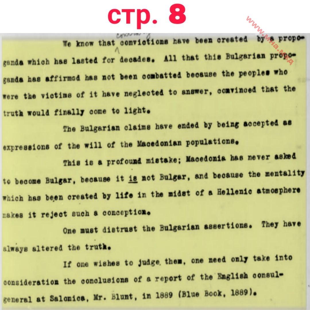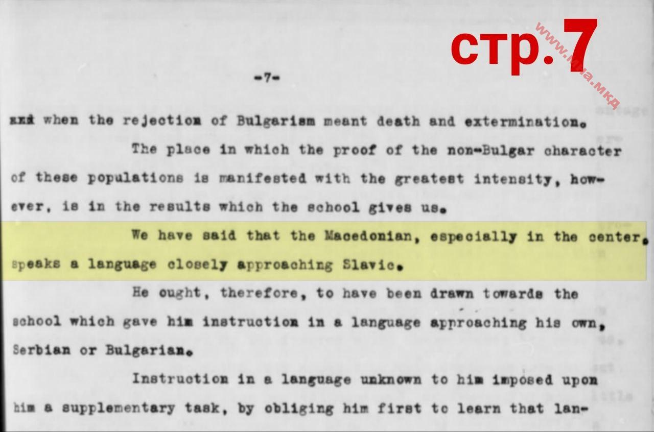 „… Знаеме дека убедувањата [се мисли за национална припадност] на луѓето беа создадени преку пропаганда што траела со децении. Бугарската пропаганда изнесуваше лажни тврдења кои не беа оспорувани, затоа што народите кои беа нејзини жртви ја занемарија потребата да им одговорат и да им се спротивстават, уверени дека вистината на крајот самата ќе излезе на виделина.