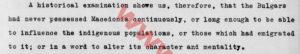 „… Историското истражување ни покажува, затоа, дека Бугарите никогаш не ја поседувале Македонија непрекинато [во континуитет], ниту доволно долго за да можат да влијаат на домородните населби, или оние кои се доселиле таму; или, со еден збор, да го променат нејзиниот карактер и менталитет. …“