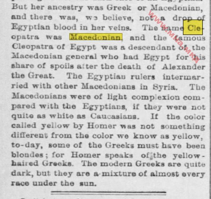 Името Клеопатра било Македонско, а познатата Клеопатра од Египет била потомок на македонскиот генерал кој го добил Египет како свој дел од пленот по смртта на Александар Велики.