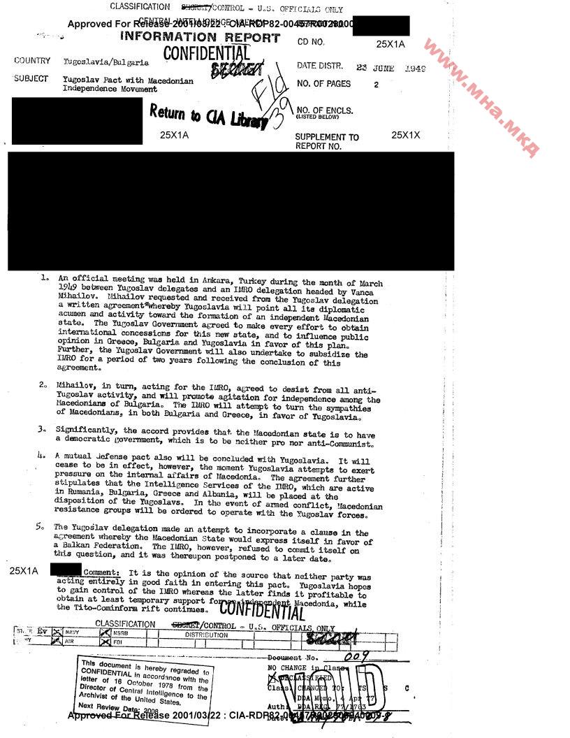 1949.06.23_CIA confidential – Yugoslav Pact with Macedonian Independence Movement