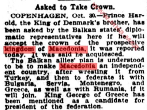 МАКЕДОНЦИTE Почнаа Светско движење за независна Влада. Вчера се разјасни дека изјавите во врска со бунтот на Македонците на улицата Џон број 426 беа неточни, бидејќи споменатите немири се случија откако се распушти редовниот собир. Македонците ги завршија своите работи и се распуштија. Комитансот не е Црна Рака организација, ниту нешто од тој карактер, туку е добро организирано Македонско револуционерно…