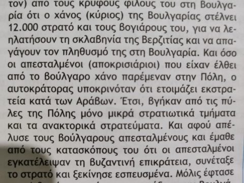 Овој грчки извор од 19 век пренесува дека во 8ми век Ромеите ги разликуваат, Верзитите (западна Македонија) од Вулгарите. Тоа значи дека од Вулгарите ги разликувале и другите домородни македонски Склавониски народи. Војна и шпионажа И во месецот октомври (во годината 773) царот (Константин V) прими порака (мандат) од тајните пријатели во Вулгарија дека кнезот (господарот) на Вулгарија испраќа 12.000…