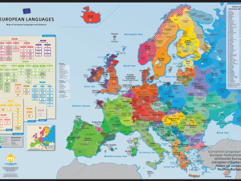 Во земјописна карта на европските јазици и наречја, македонскиот јазик правилно е наведен со своето име – македонски јазик. Се простира преку границите на Република Македонија, во северните делови на Република Грција и во западните делови на Република Бугарија. Извор: Eurominority